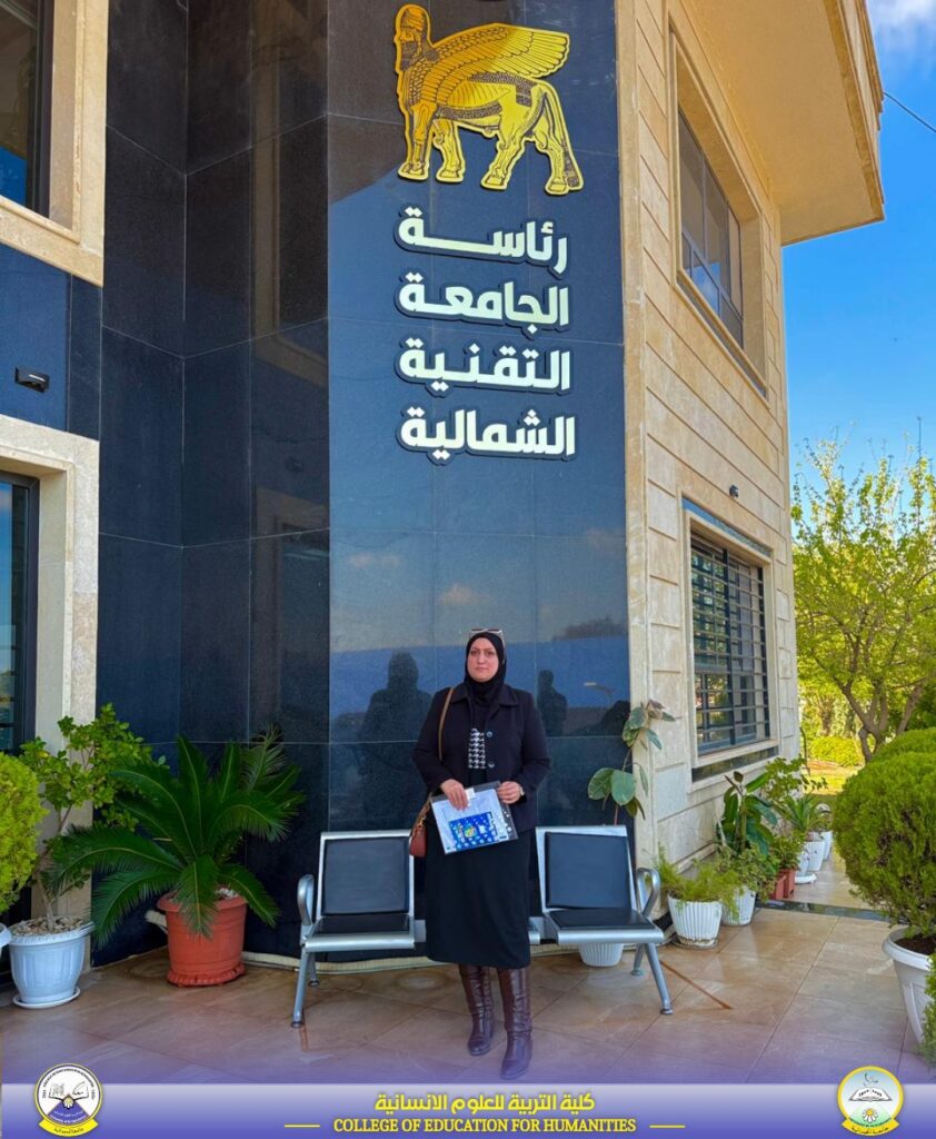مثّلت التدريسية م.م. فاطمة فاروق جاسم، مسؤولة شعبة الشؤون العلمية في رئاسة الجامعة، الكلية في زيارة علمية إلى الجامعة التقنية الشمالية يوم الثلاثاء الموافق 8/4/2026، برفقة م.م. رنا شكر محمود.